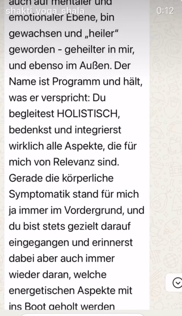 Ich bin Steinbock mit Aszendent Widder, Generatorin 2/4, meine Lebenszahl ist die 11: die Heilerin. Vor einigen Jahren bin ich dem Ruf meines Herzens gefolgt und habe meine yoga Ausbildung gestartet, um endlich das in Tiefe weiter geben zu können, was auch mich auf meinem Heilungsweg so nachhaltig unterstützt hat auf vielen Ebenen. Das ich nach vielen Jahren Yoga Praxis mal selbst unterrichten würde, hatte ich nicht geplant. Meine Intuition wusste es besser…Ich wurde zudem in eine uralte indische Heiltechnik eingeweiht, die ich lighthealing nenne. Ich liebe Sauna-me-Time + dunkle selbst gemachte Raw-Schokolade und bin fasziniert von den Bienen die ich seit einigen Jahren mit spiritual beekeeping begleiten darf.
